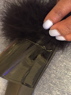 Make sure its firmly placed. Repeat this for both sandals and allow to dry. Lastly, you will want to trim the excess fur from the sides so that it doesn’t drag when you wear them.
